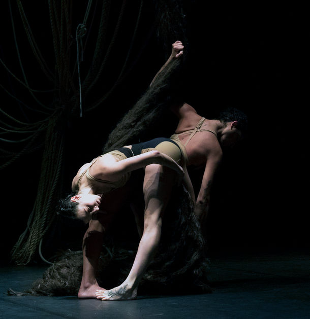 In the first act, the dancers move through a tangle of 120 strings. Knotting strings that symbolize the affective bonds that tie us. Ropes that serve to trap, pull, connect, release.
